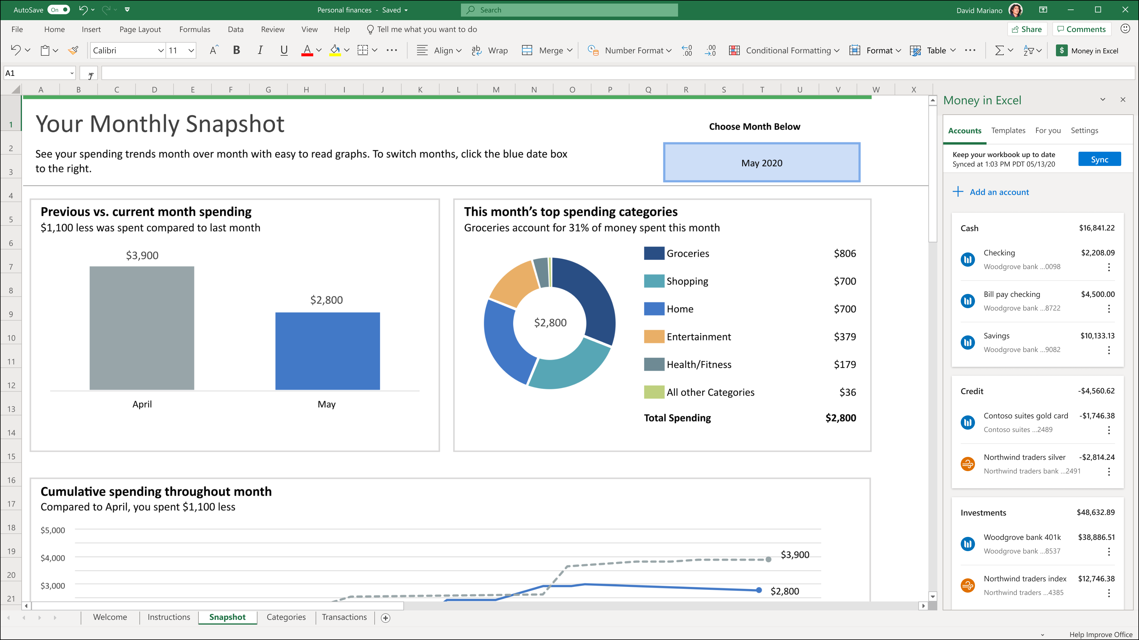 Visual Aids to Manage Finances with Excel